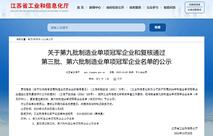 近日,江蘇省工業(yè)和信息化廳公布了《第九批制造業(yè)單項冠軍企業(yè)名單》,中電環(huán)保憑借核心產(chǎn)品“核電凝結(jié)水精處理設(shè)備”成功登榜,榮獲“制造業(yè)單項冠軍”這一國家級重磅榮譽。這不僅是對公司技術(shù)實力與市場地位的高度認可,也是中電環(huán)保在深耕工業(yè)水處理領(lǐng)域三十年征程中的又一重要里程碑。